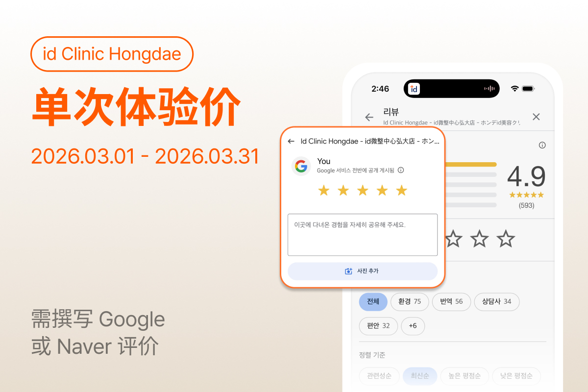 单次体验价 (需撰写 Google 或 Naver 评价) | 弘大 皮肤科诊所 Unique ID
